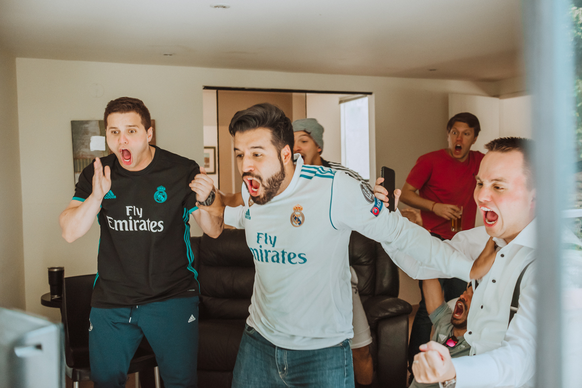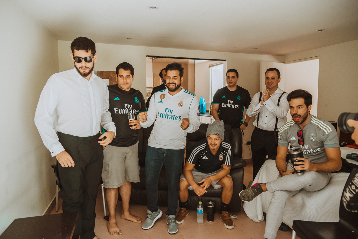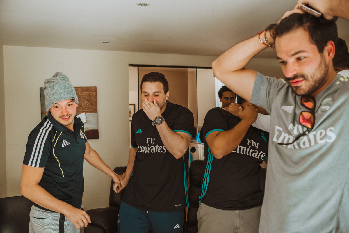 Esta vez me toco cubrir al novio en su casa, que cuando llegue y me di con esa multitud dije, esto sera divertido!! Reunidos todos por un partido donde jugaban el Real Madrid y Liverpool. Hermosa previa y de las mejores que pude tener, demasiado divertida!
