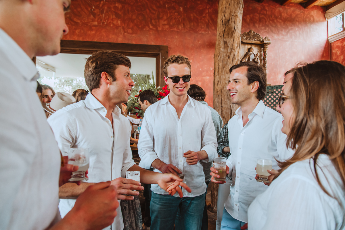 amigos invitados saludos alegria felicidad sonrisas disfrute al aire libre almuerzo boda de dia fotografa de bodas en peru novio y amigos